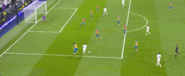 整个上半场,皇马完全控制了比赛局面,控球率63%,13次射门9次打正,创造4次绝佳机会,瓦伦西亚只有1次射门没有打正,没有创造破门良机。