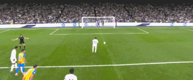 第15分钟,姆巴佩禁区内被对手抱住倒地,同时贝林厄姆也被防守球员推倒,主裁判通过VAR介入改判点球,随后姆巴佩主罚命中,帮助皇马1-0领先。